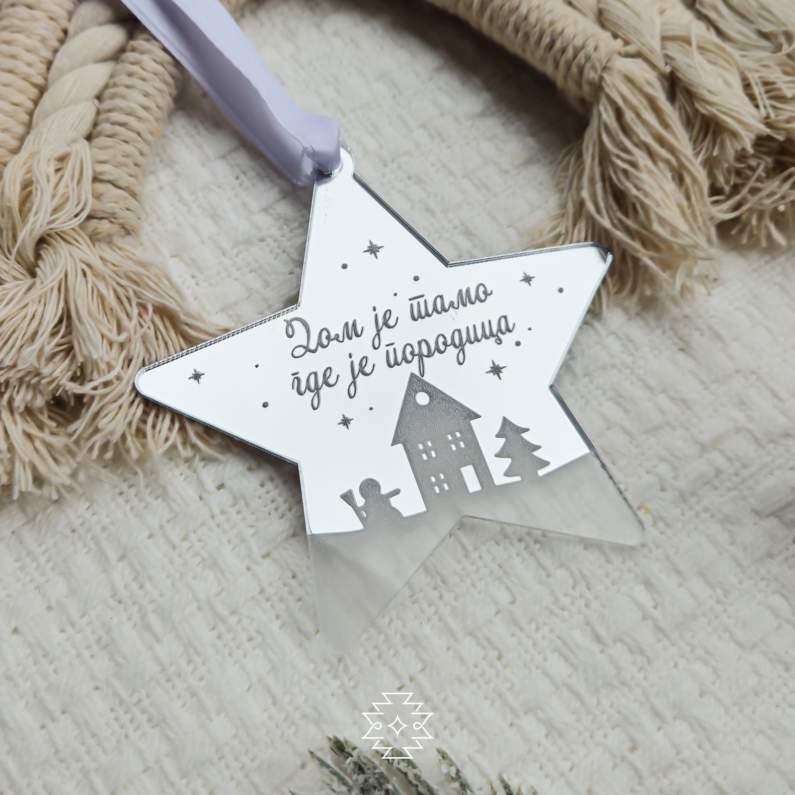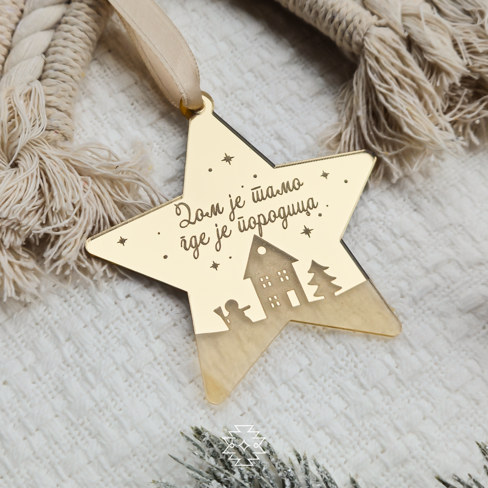 Personalizovani novogodišnji ukras zvezda sa natpisom – Dom je tamo gde je porodica.